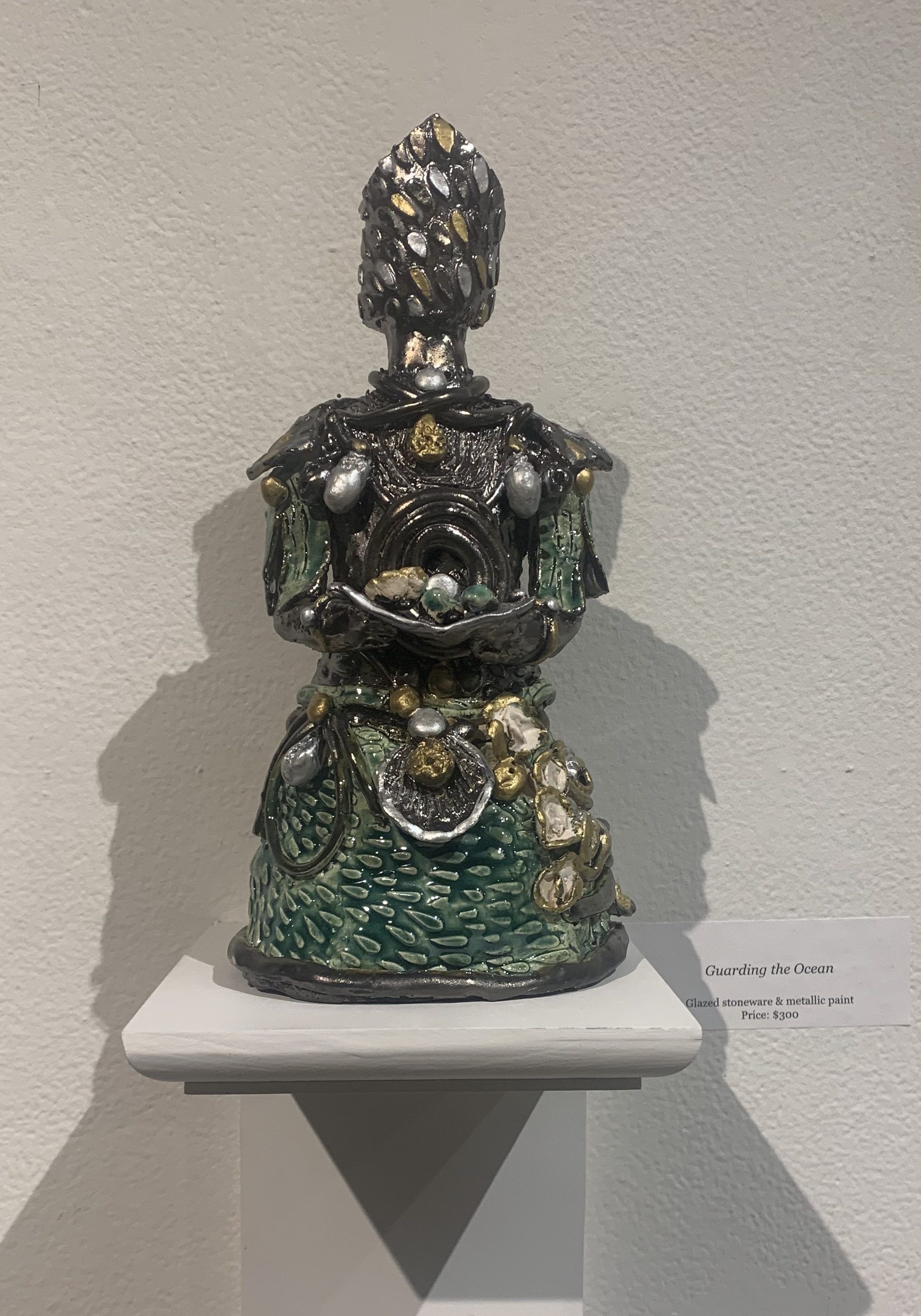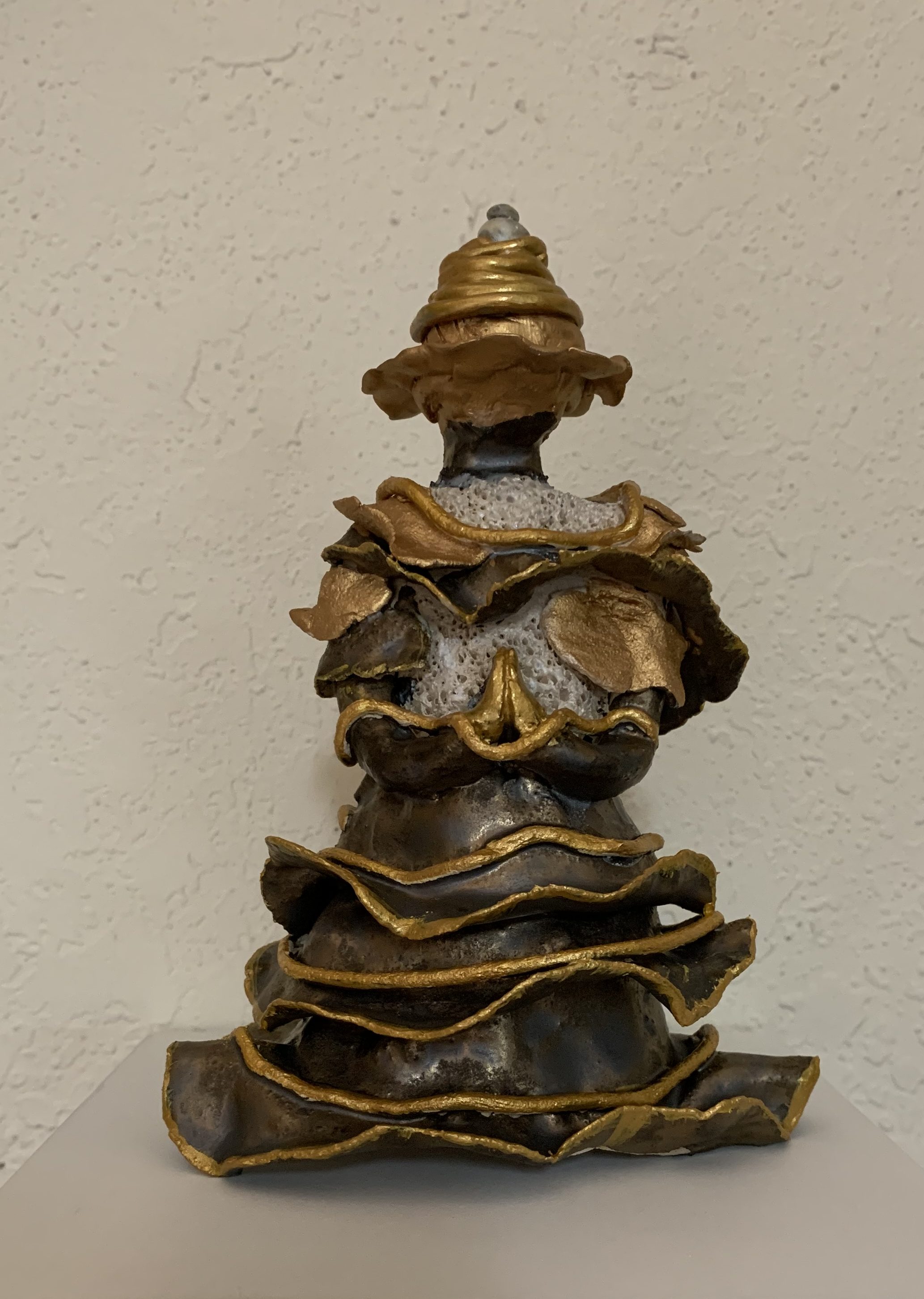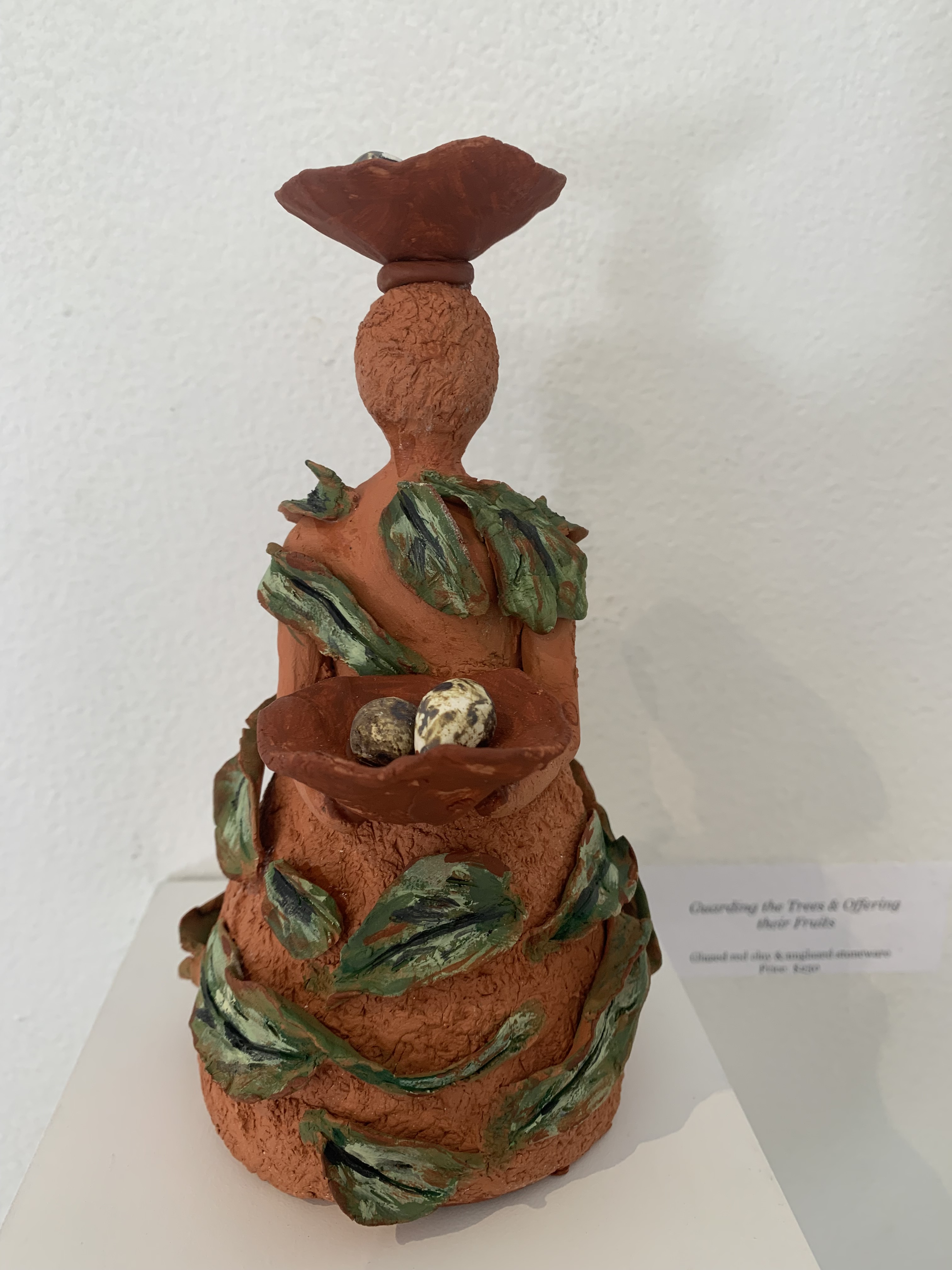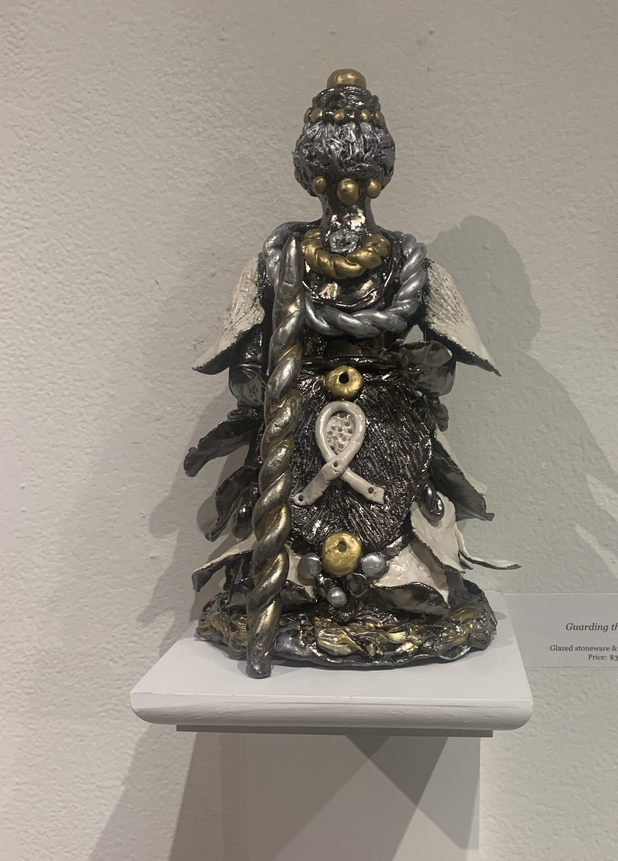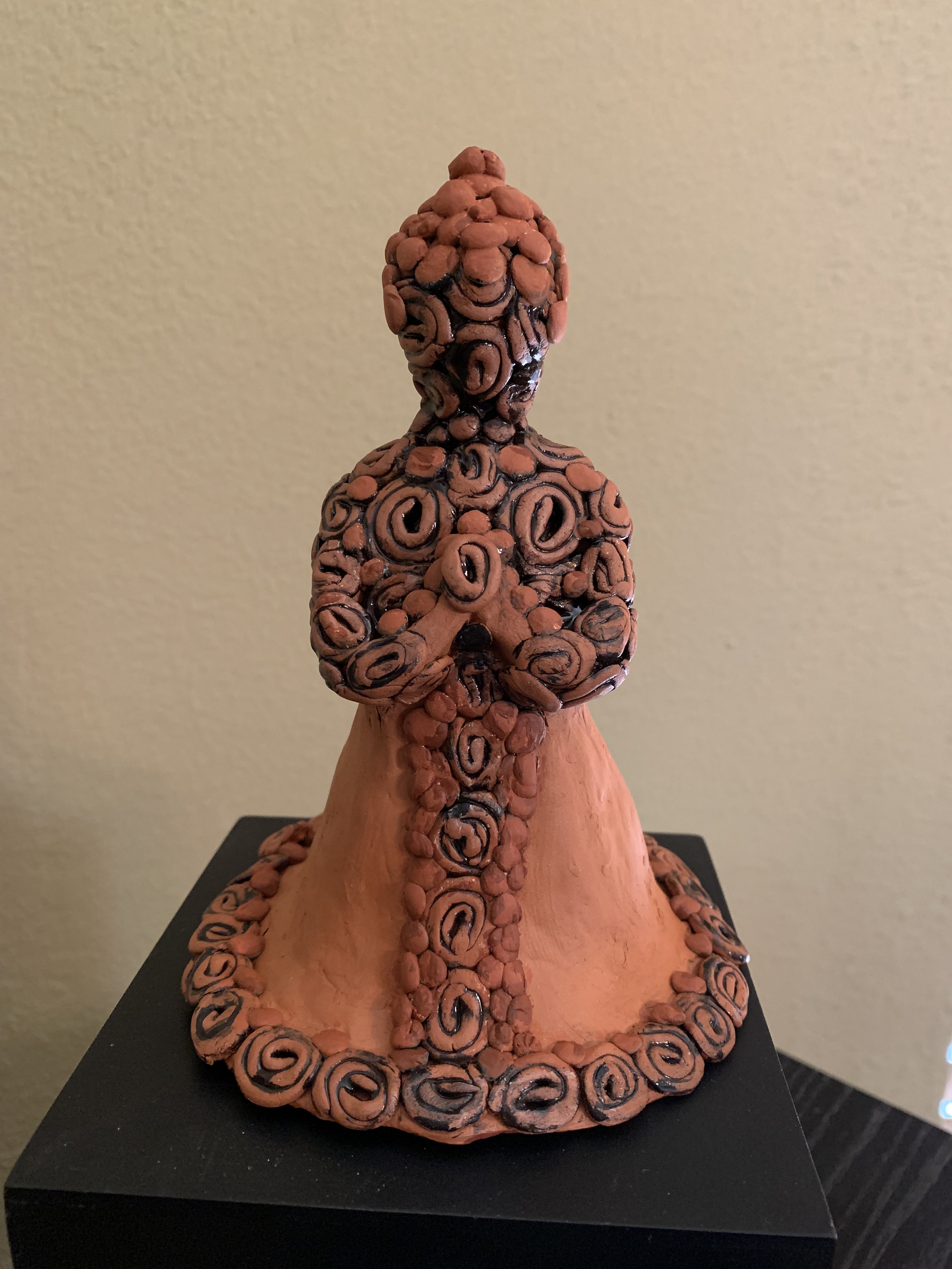 I’m fascinated by the relationship between human beings and the powerful, yet mortal spirits of the Orixas (Orishas). The Orixas are spirits that help enable human begins achieve the destiny that God planned for them before they were born. They are part of the African religion from the Yoruba nation that came to my home city during the slave trade. To be cohesive with my style of creation, I fuse my inspirations in these small figures by adding textures, blended colors, swirled lines, and intrinsic shapes from the ocean, other natural elements, and African symbolism. I call them Guardians. They offer peace and are intended to guard nature and ourselves.