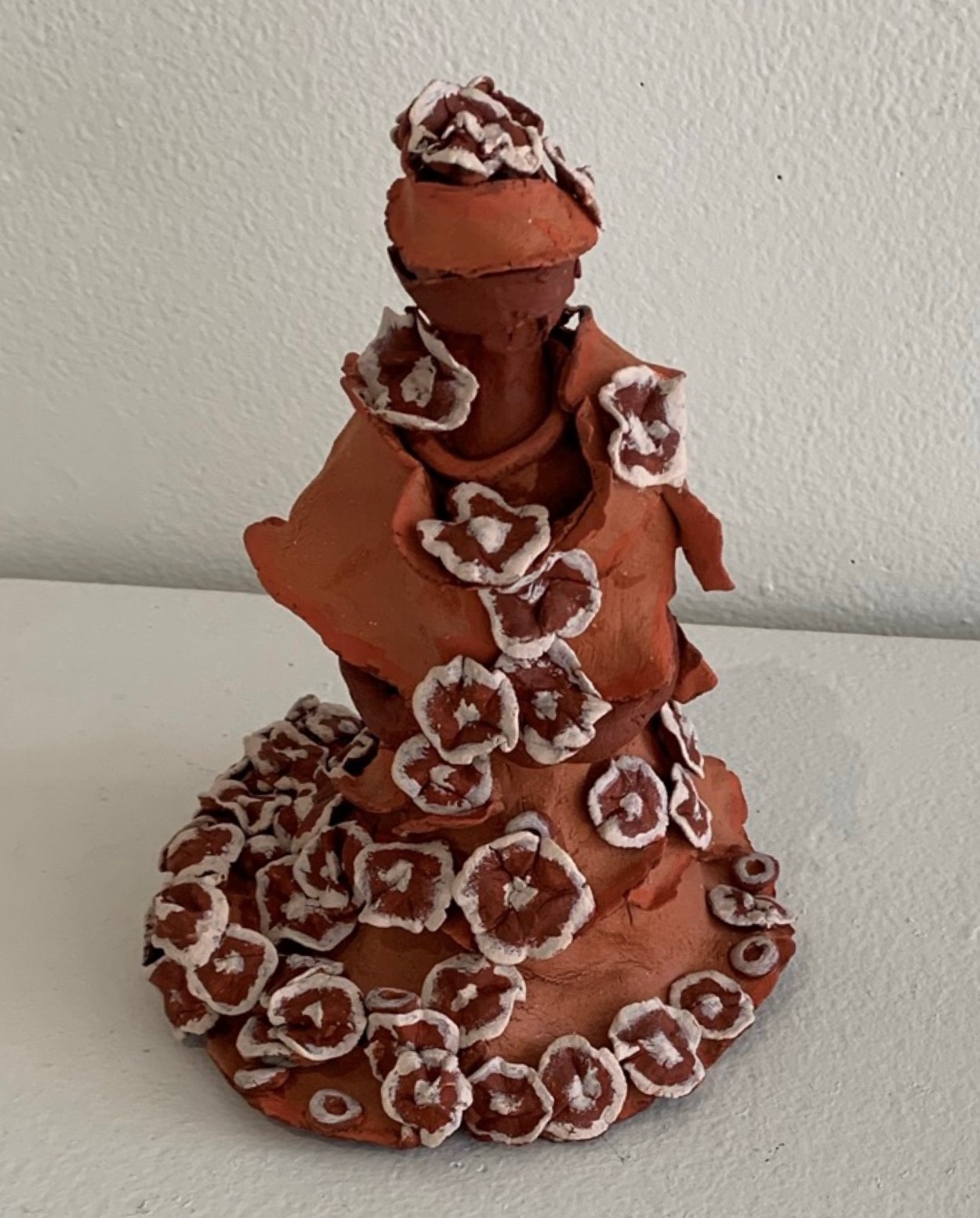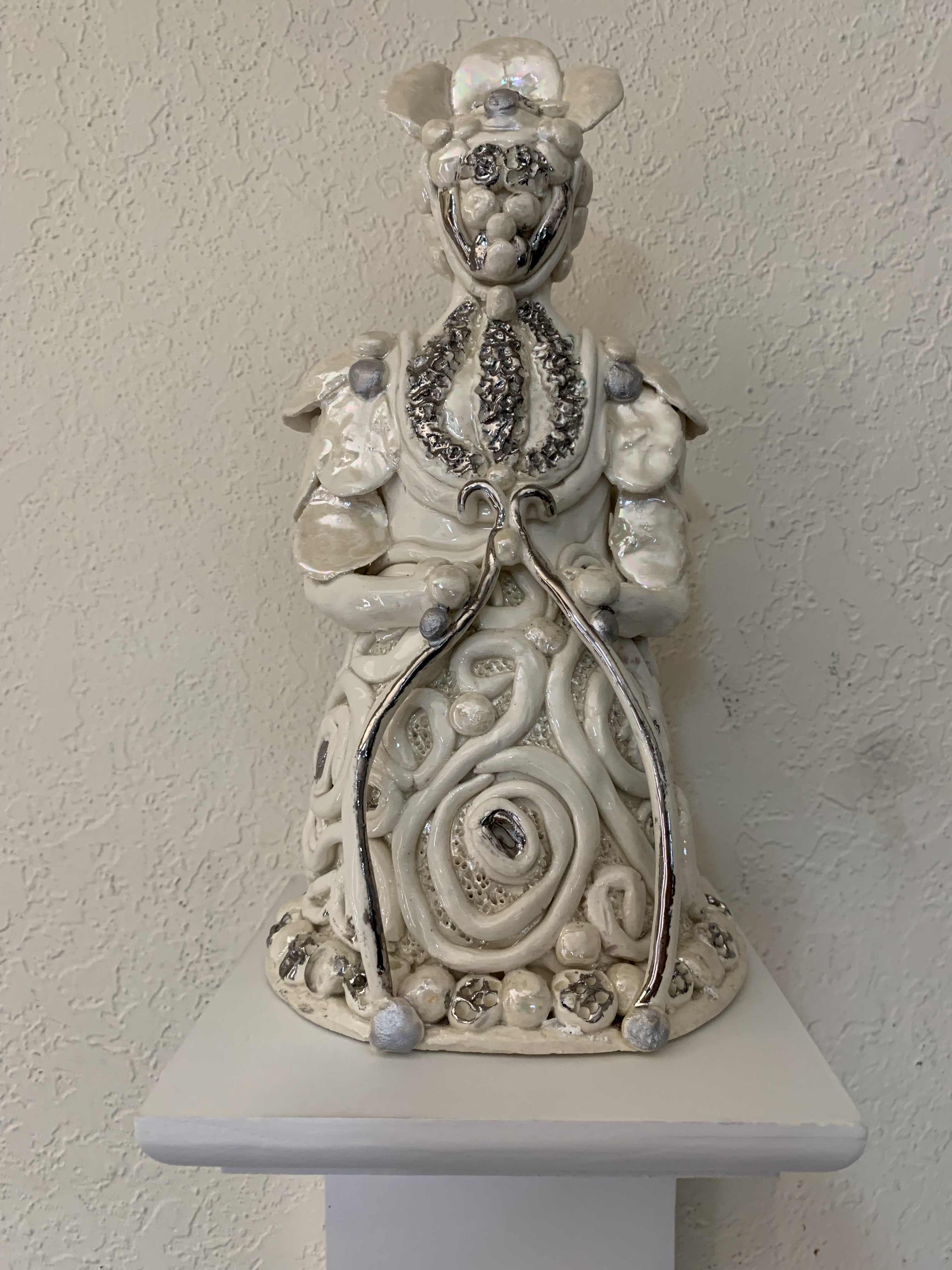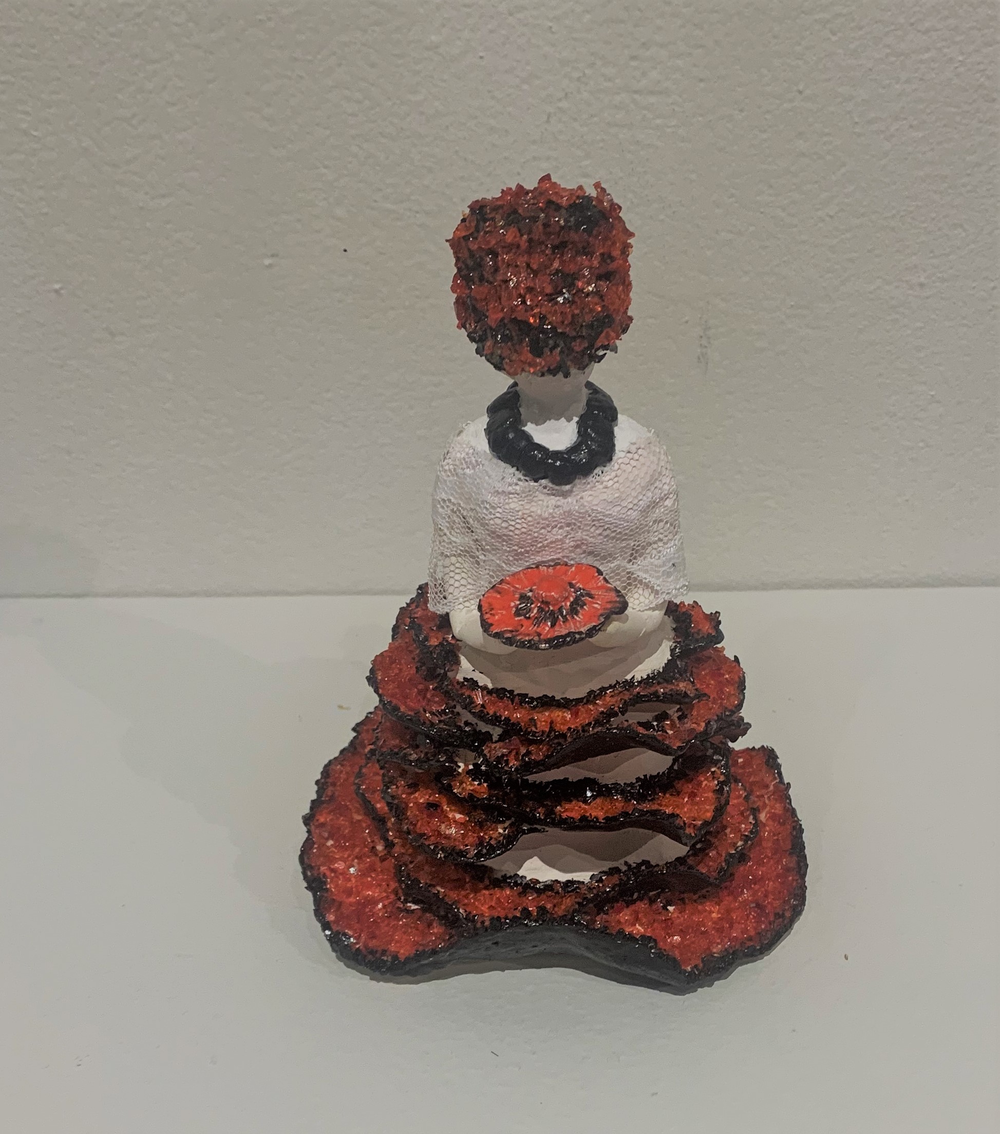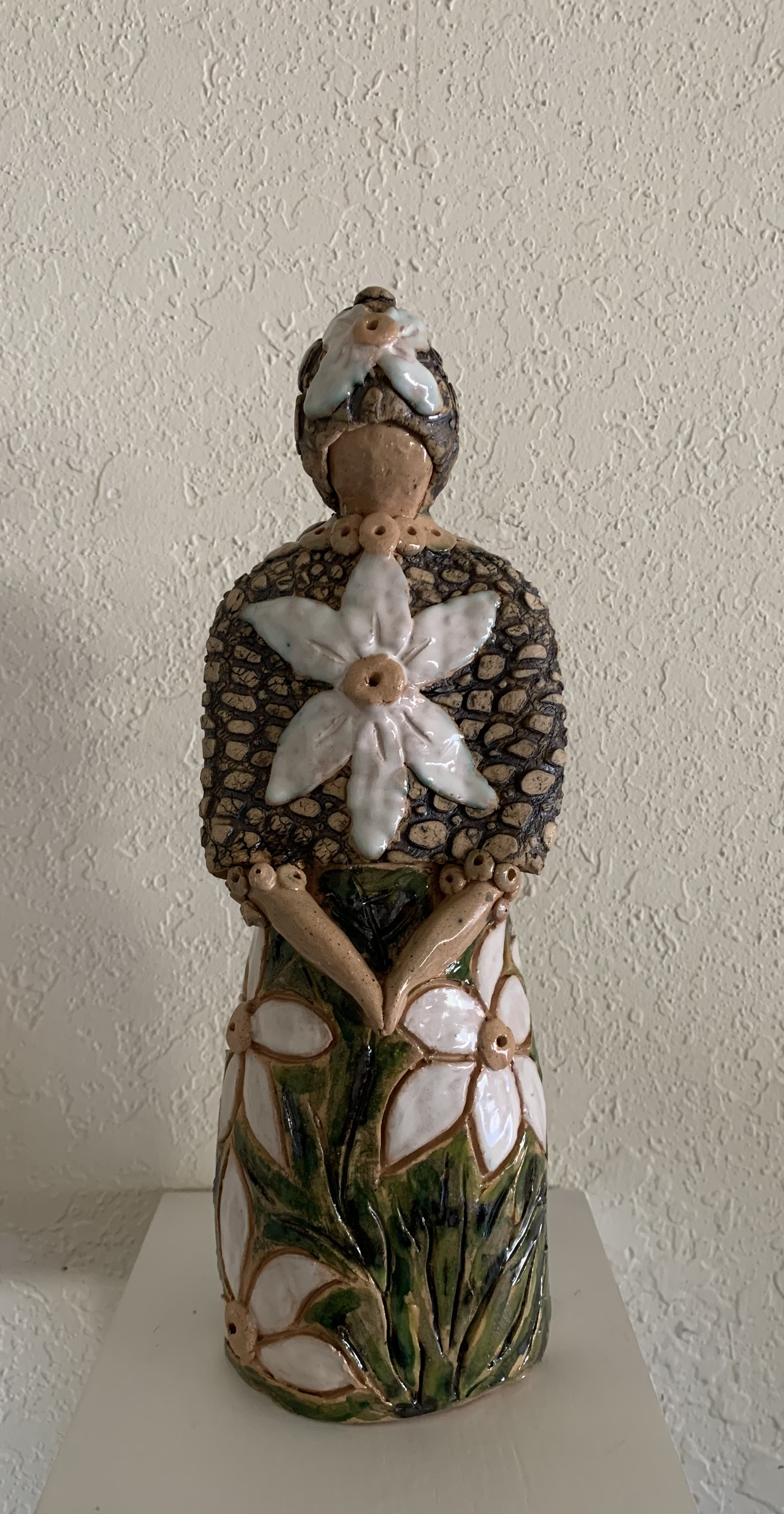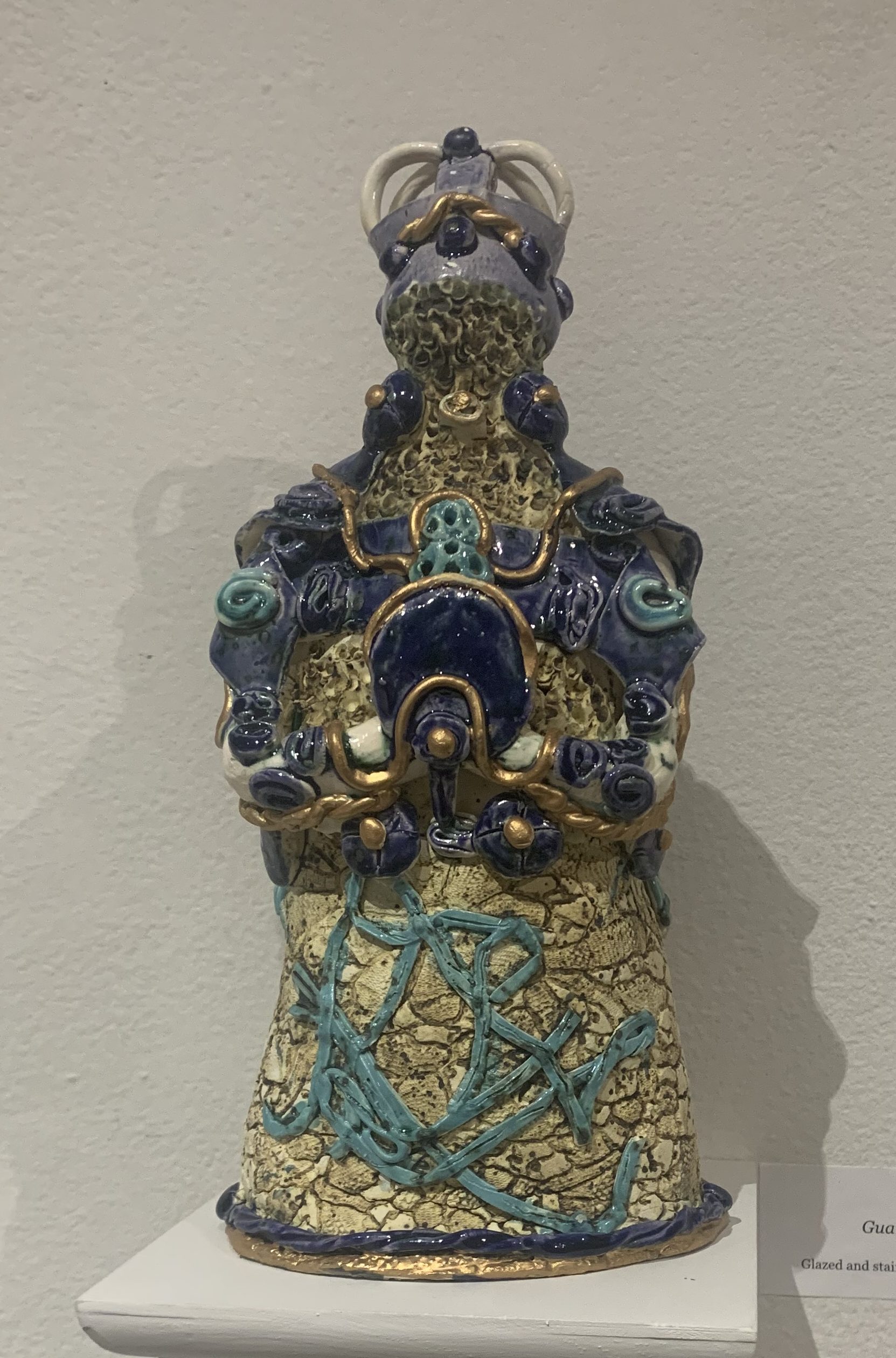 I’m fascinated by the relationship between human beings and the powerful, yet mortal spirits of the Orixas (Orishas). The Orixas are spirits that help enable human begins achieve the destiny that God planned for them before they were born. They are part of the African religion from the Yoruba nation that came to my home city during the slave trade. To be cohesive with my style of creation, I fuse my inspirations in these small figures by adding textures, blended colors, swirled lines, and intrinsic shapes from the ocean, other natural elements, and African symbolism. I call them Guardians. They offer peace and are intended to guard nature and ourselves.