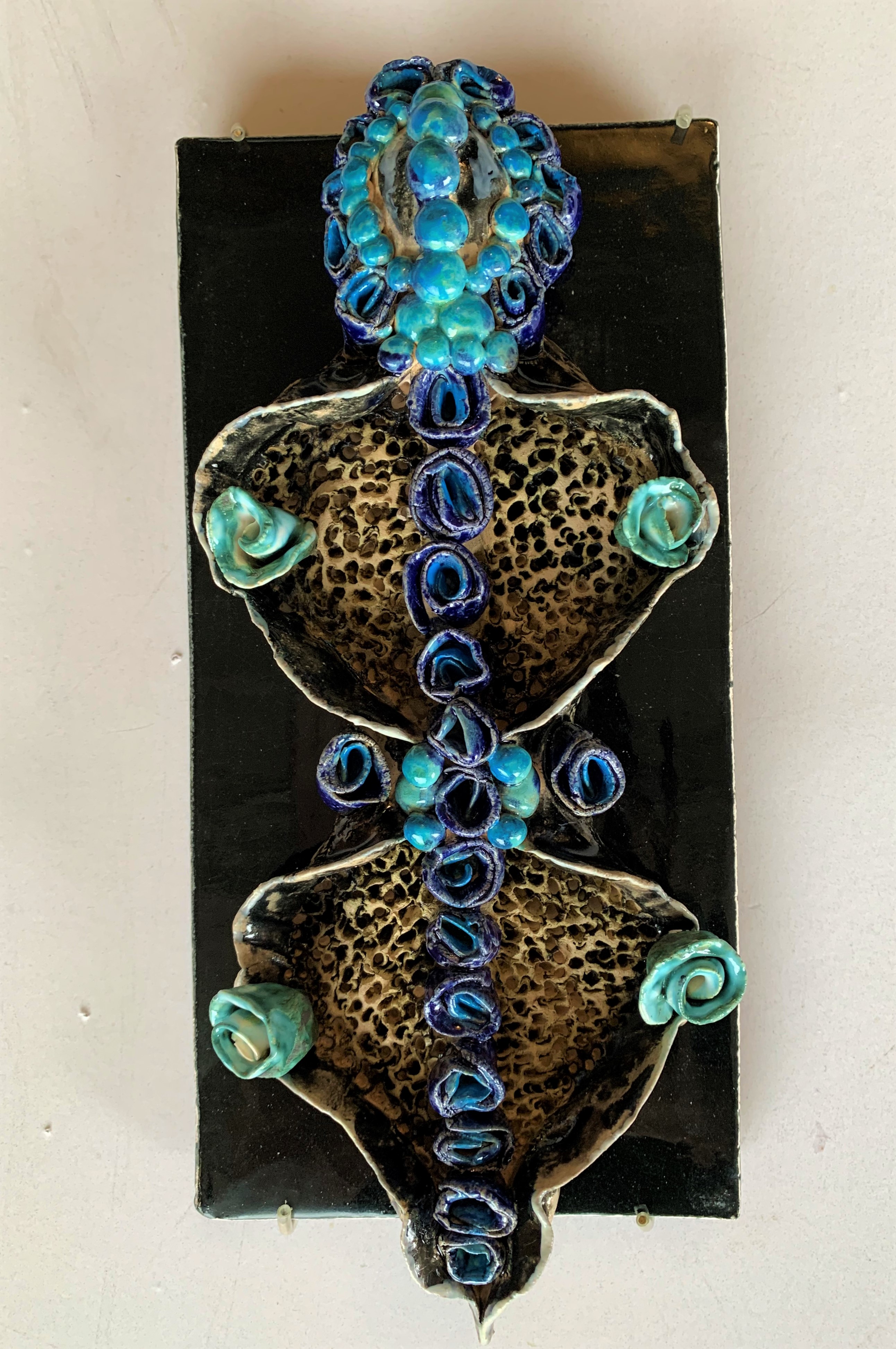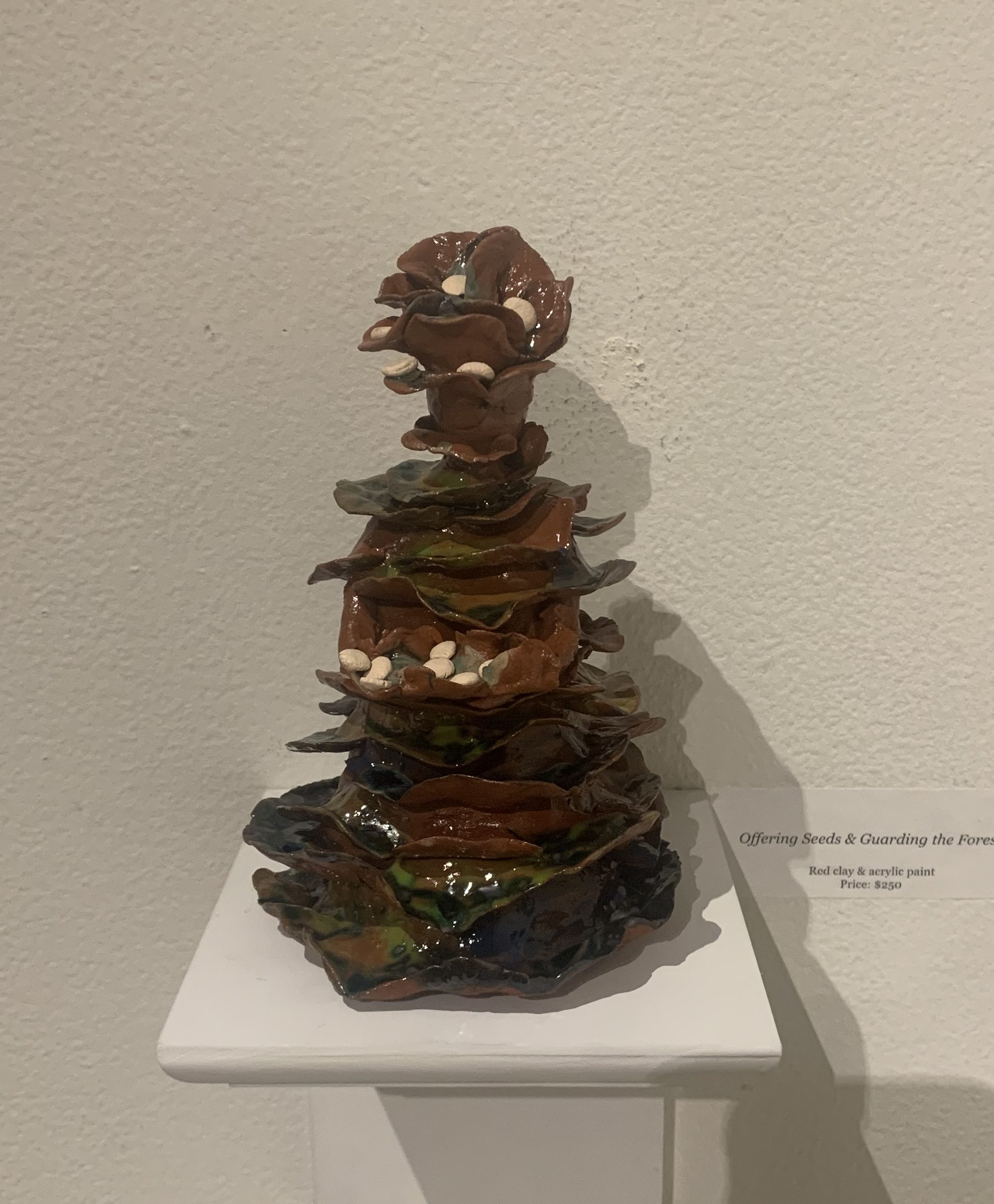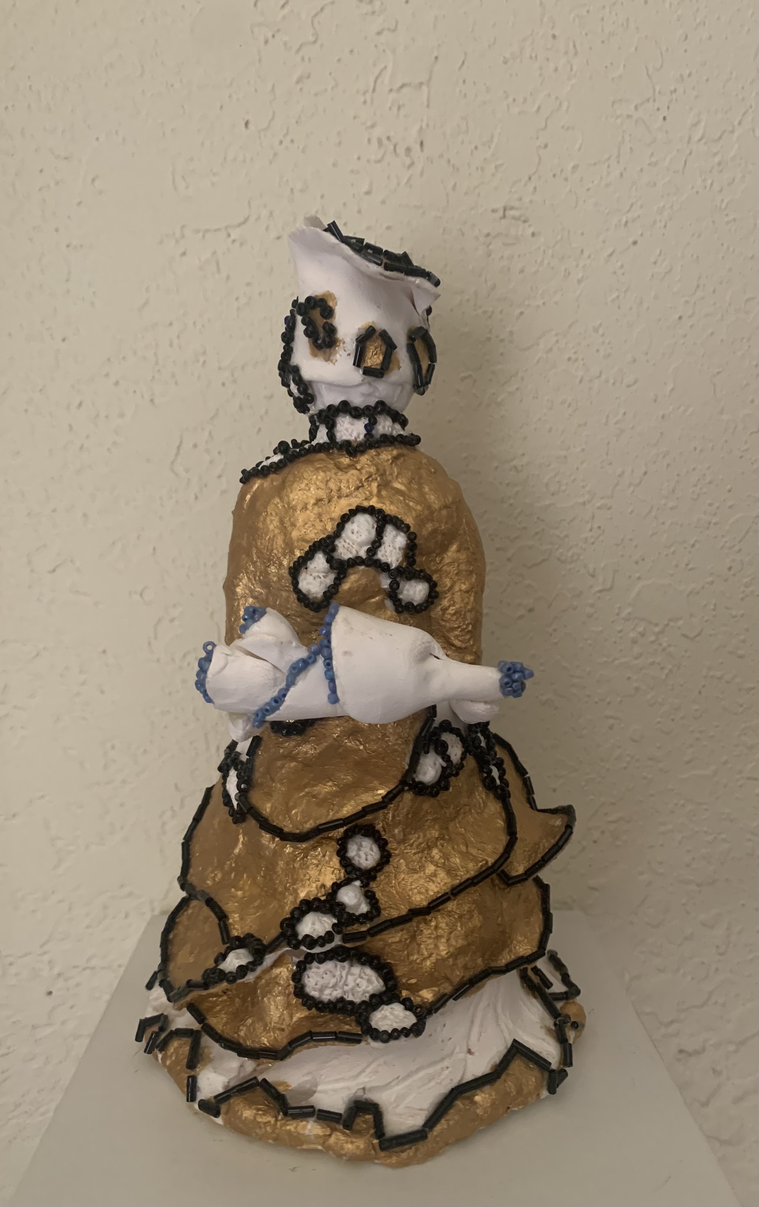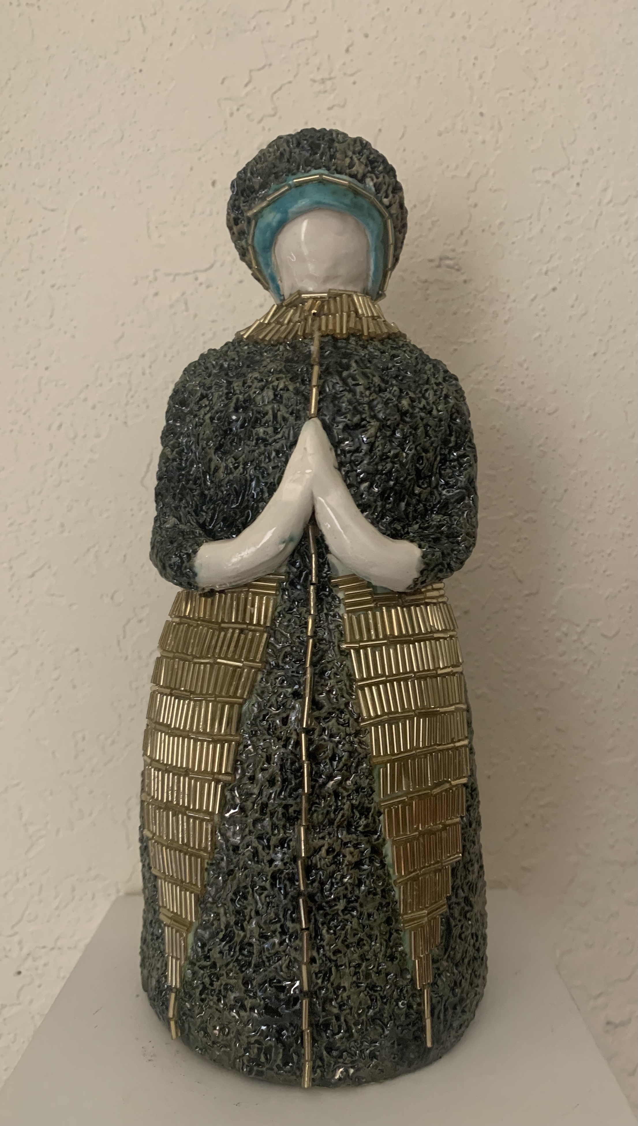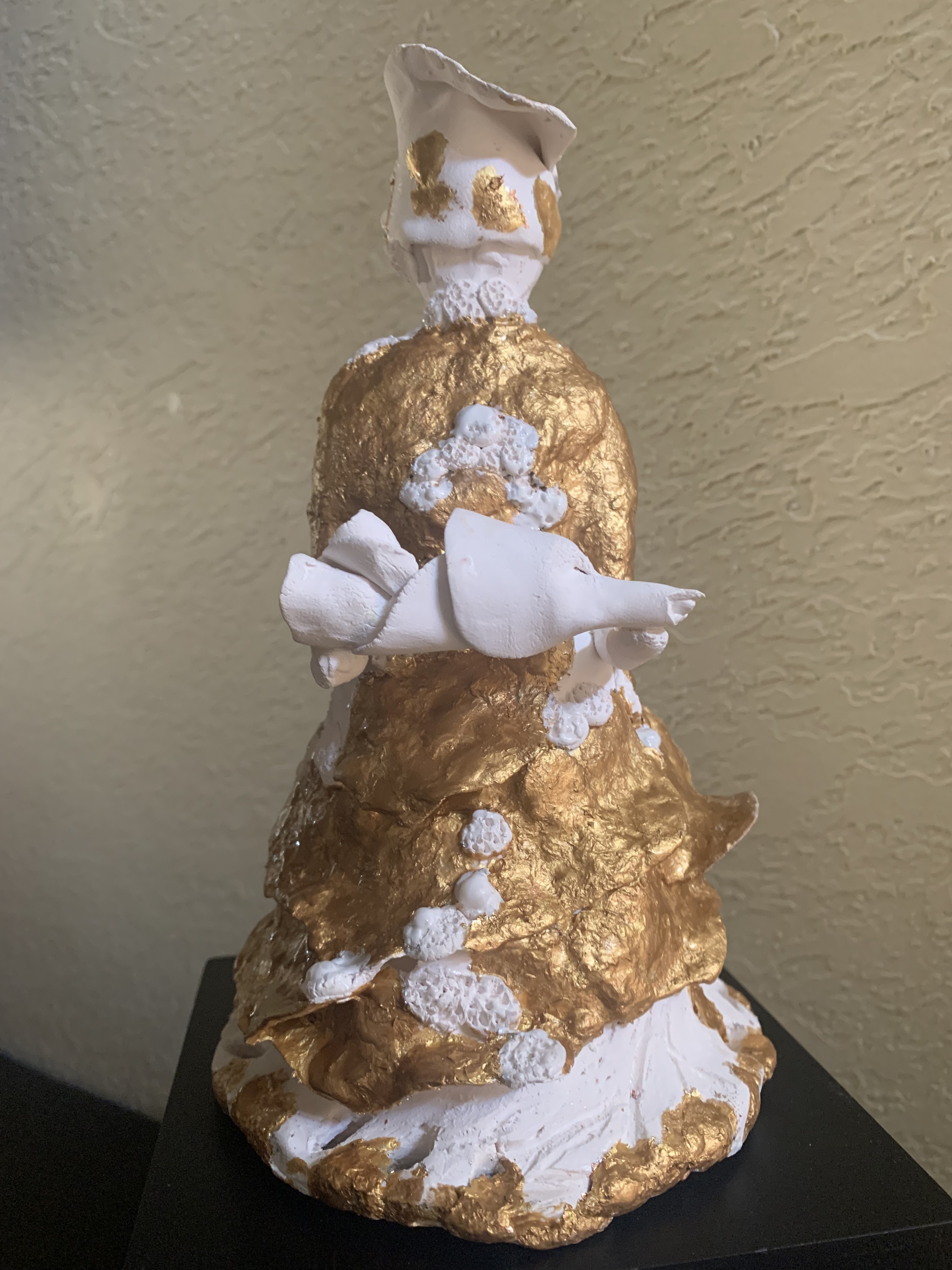 I’m fascinated by the relationship between human beings and the powerful, yet mortal spirits of the Orixas (Orishas). The Orixas are spirits that help enable human begins achieve the destiny that God planned for them before they were born. They are part of the African religion from the Yoruba nation that came to my home city during the slave trade. To be cohesive with my style of creation, I fuse my inspirations in these small figures by adding textures, blended colors, swirled lines, and intrinsic shapes from the ocean, other natural elements, and African symbolism. I call them Guardians. They offer peace and are intended to guard nature and ourselves.