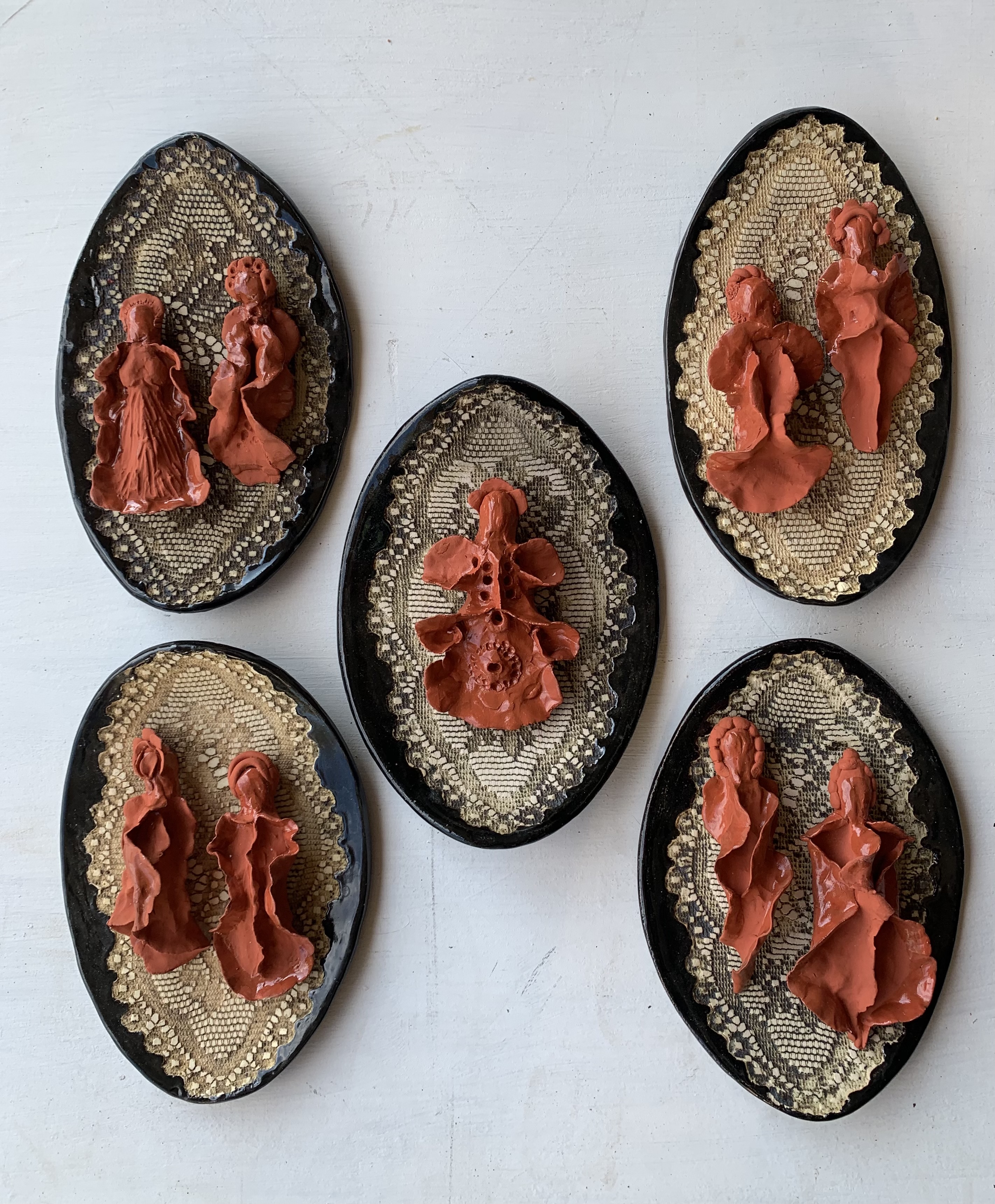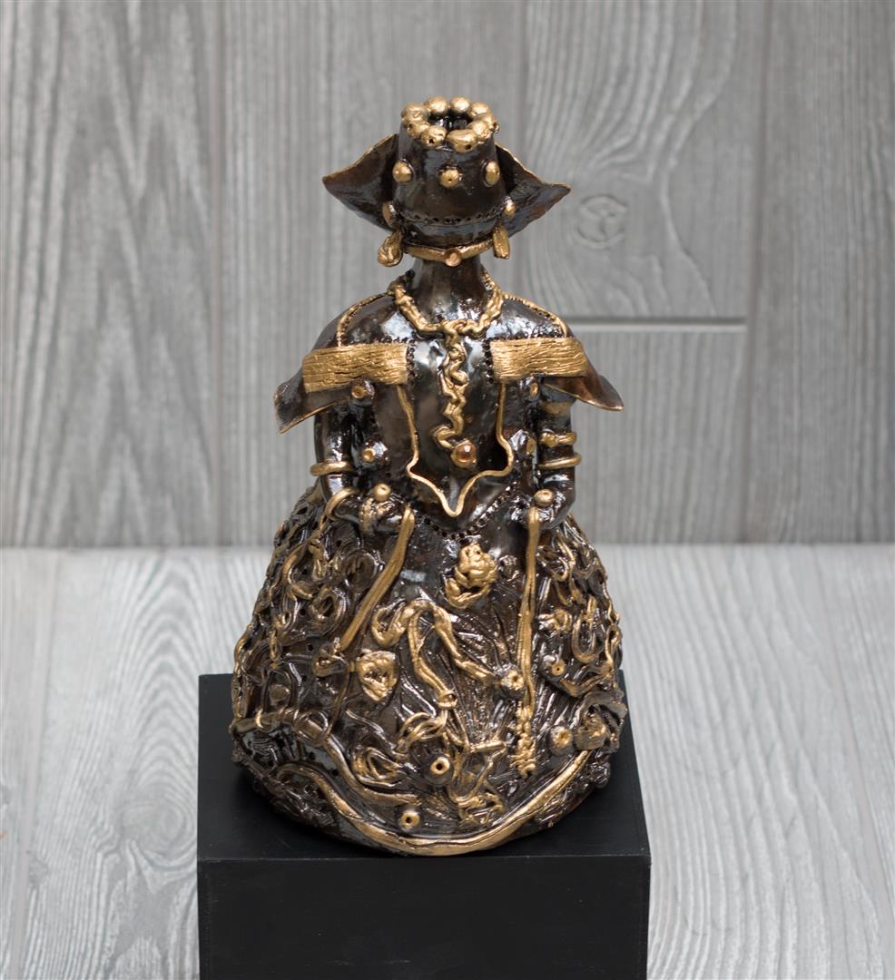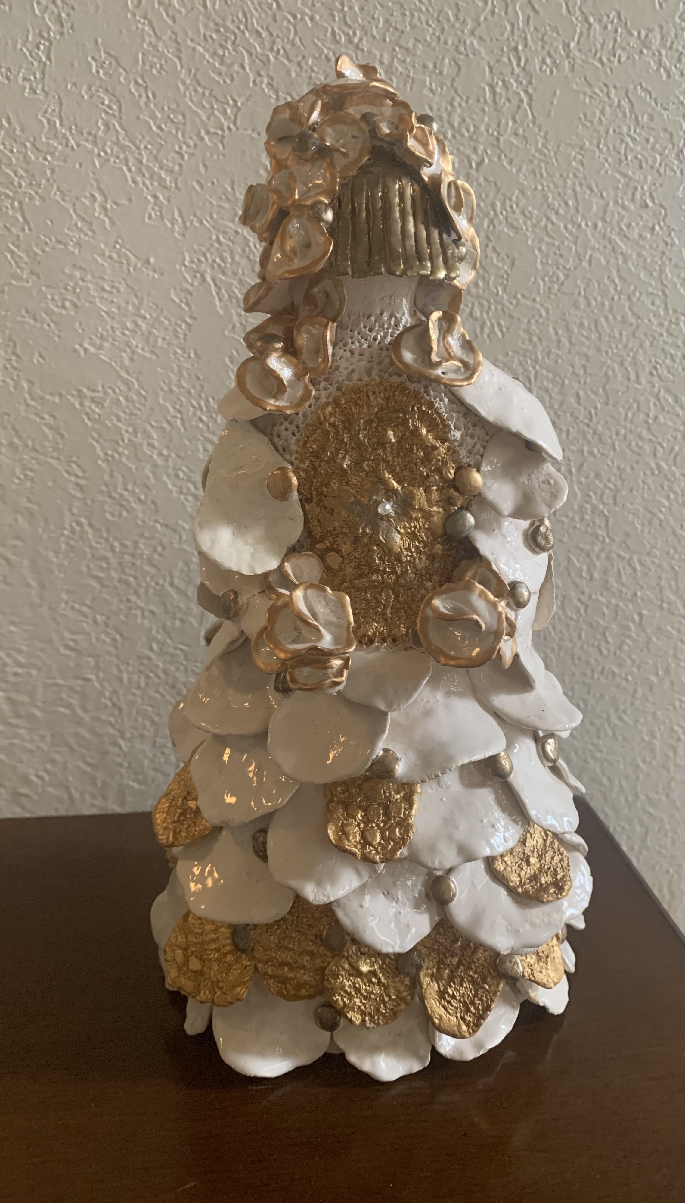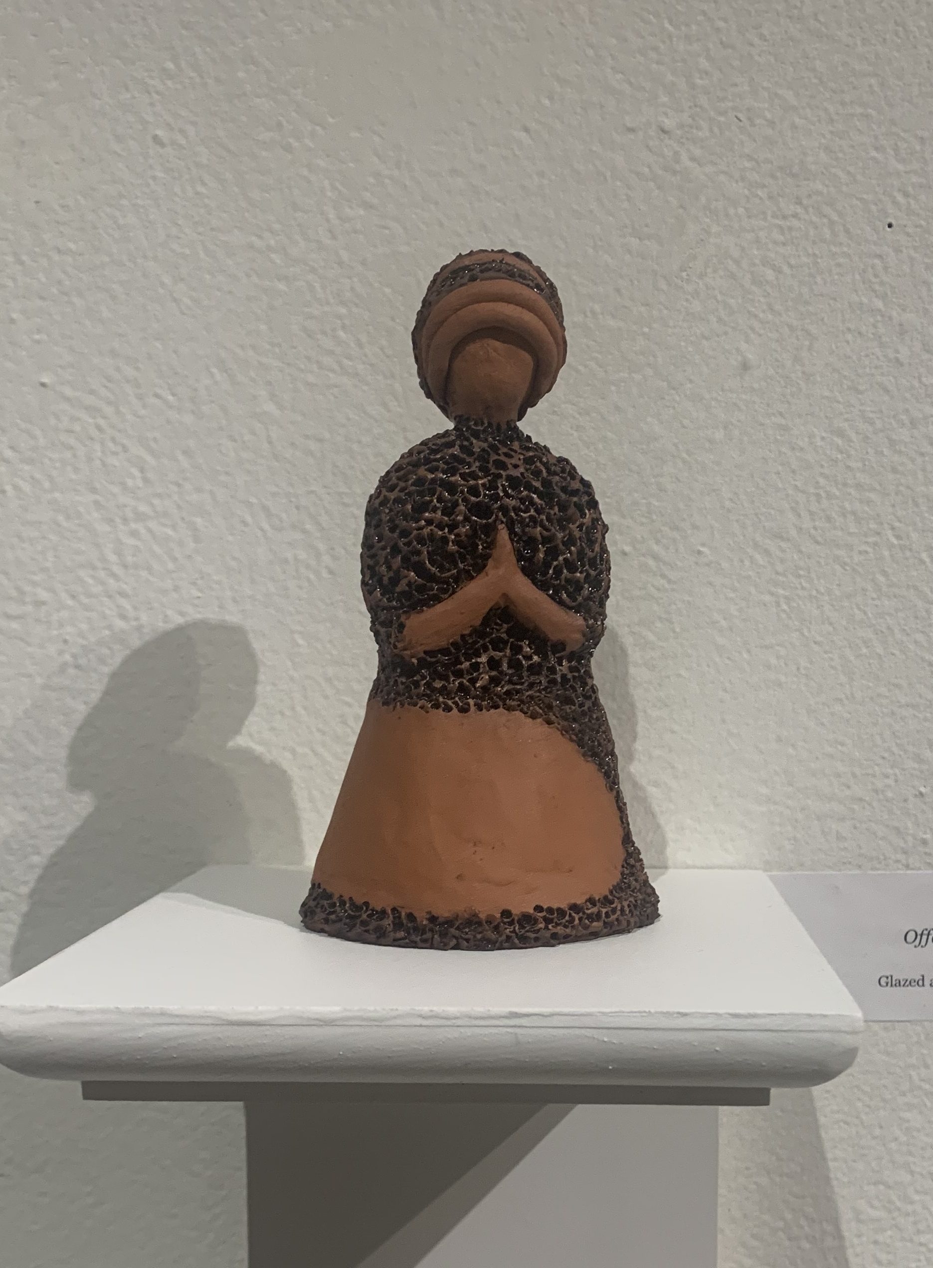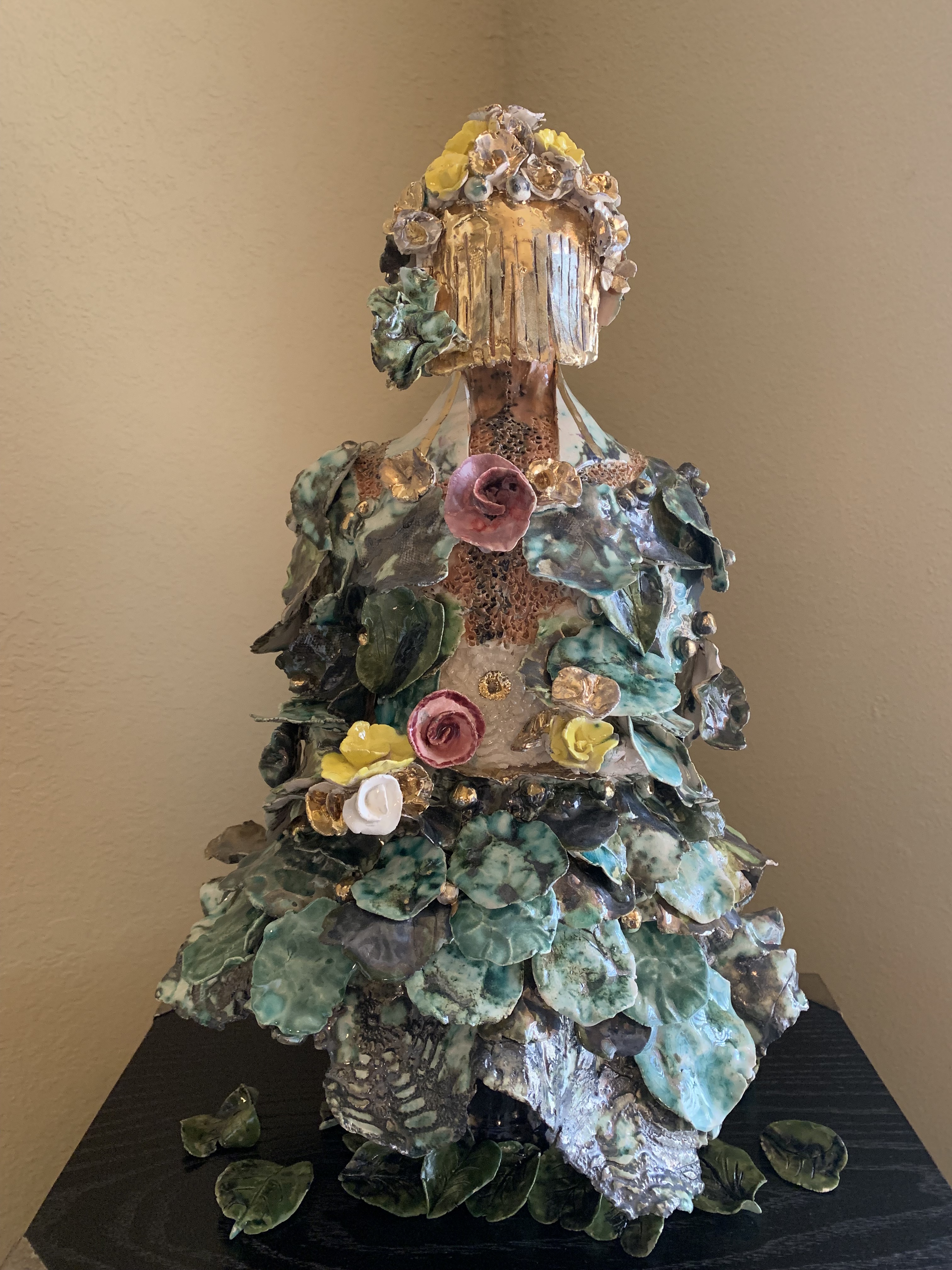 I’m fascinated by the relationship between human beings and the powerful, yet mortal spirits of the Orixas (Orishas). The Orixas are spirits that help enable human begins achieve the destiny that God planned for them before they were born. They are part of the African religion from the Yoruba nation that came to my home city during the slave trade. To be cohesive with my style of creation, I fuse my inspirations in these small figures by adding textures, blended colors, swirled lines, and intrinsic shapes from the ocean, other natural elements, and African symbolism. I call them Guardians. They offer peace and are intended to guard nature and ourselves.