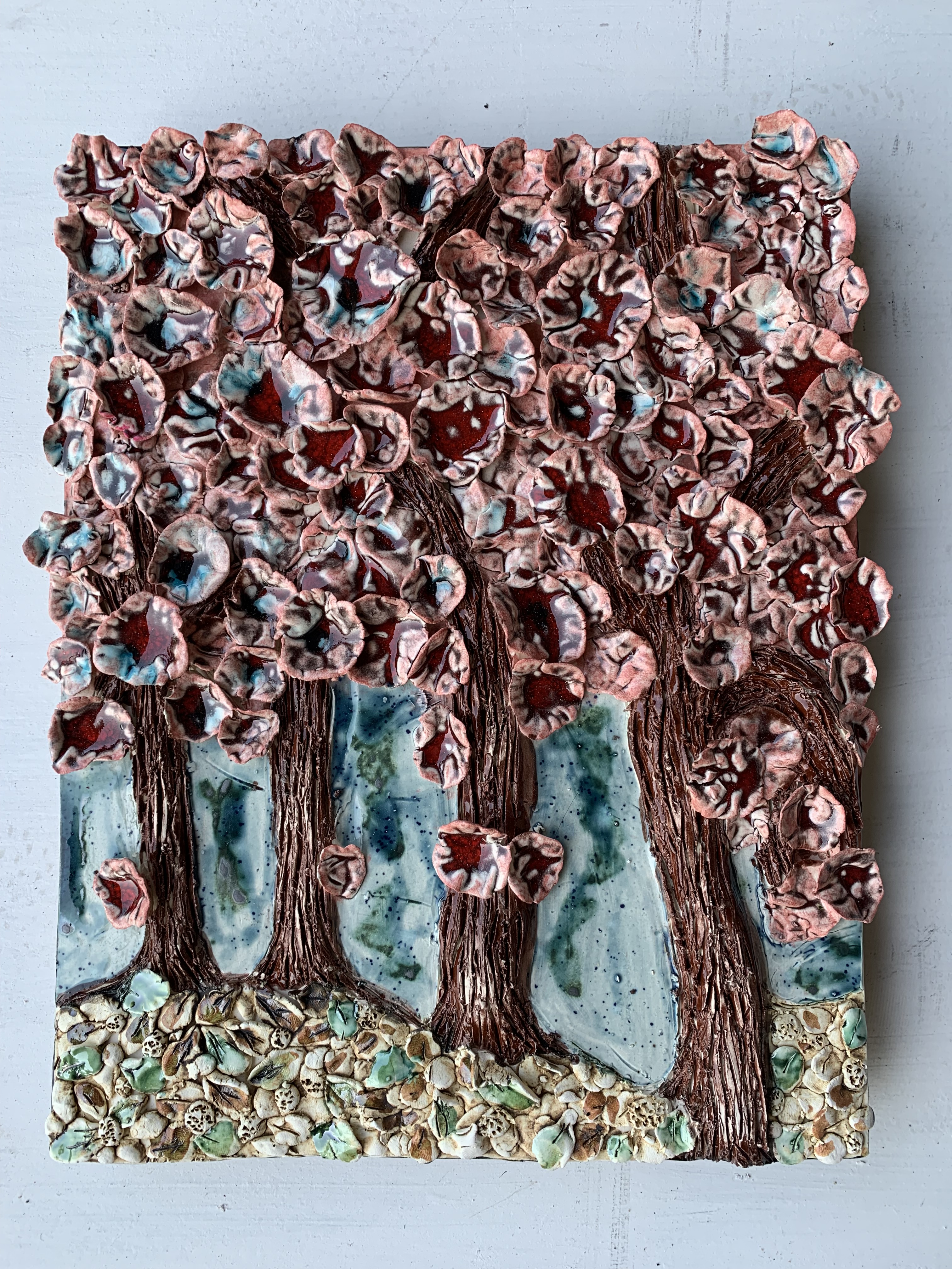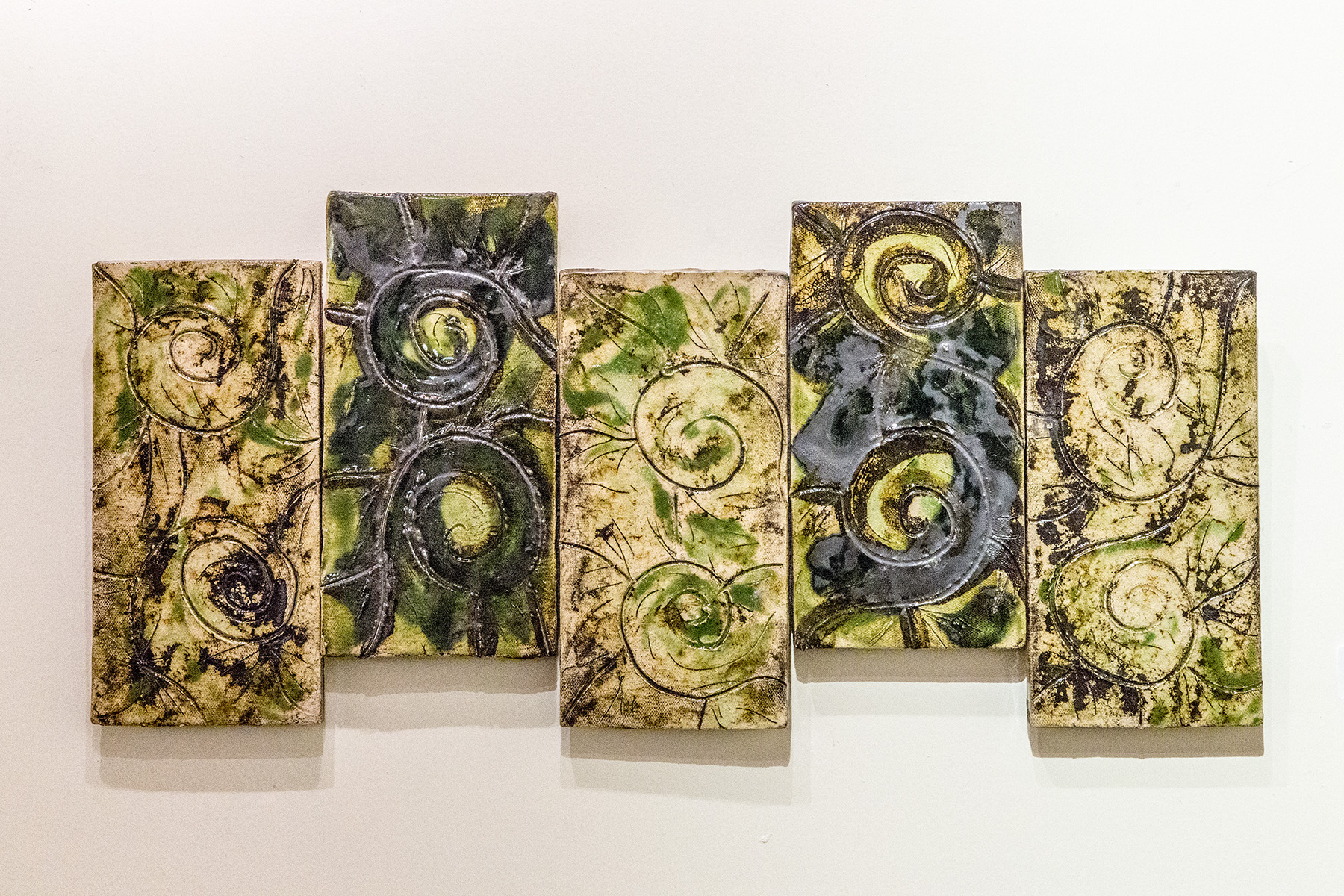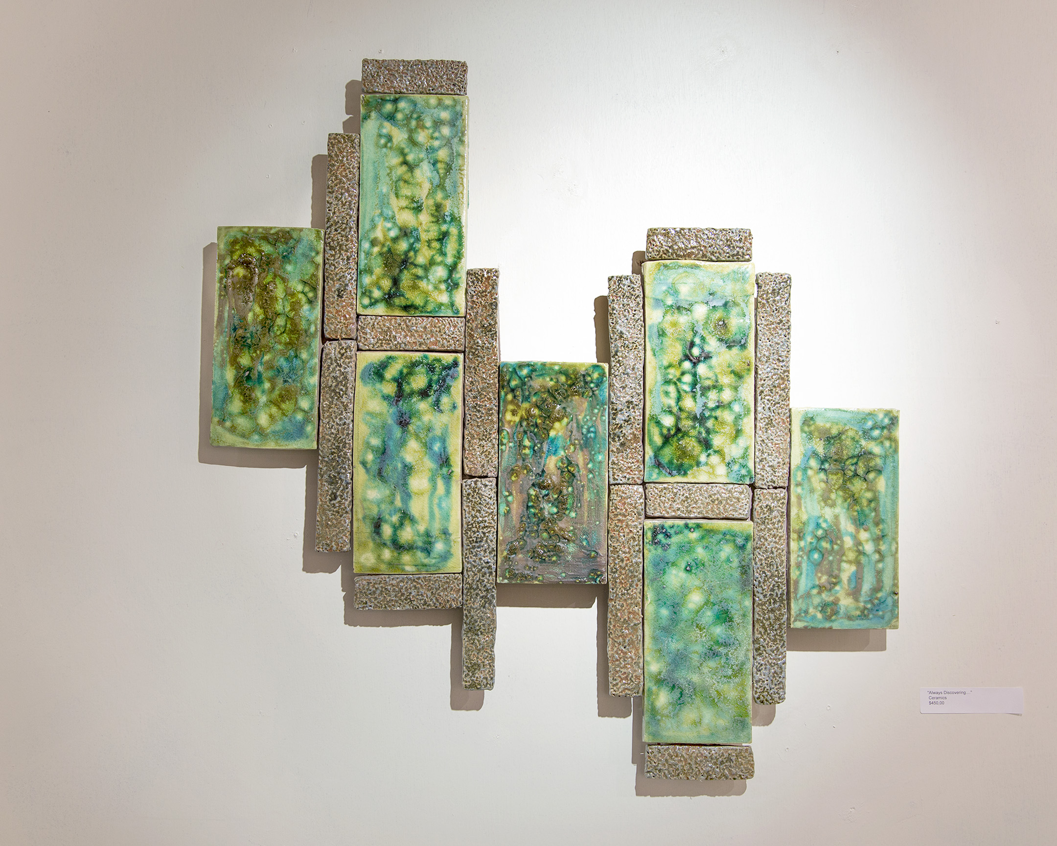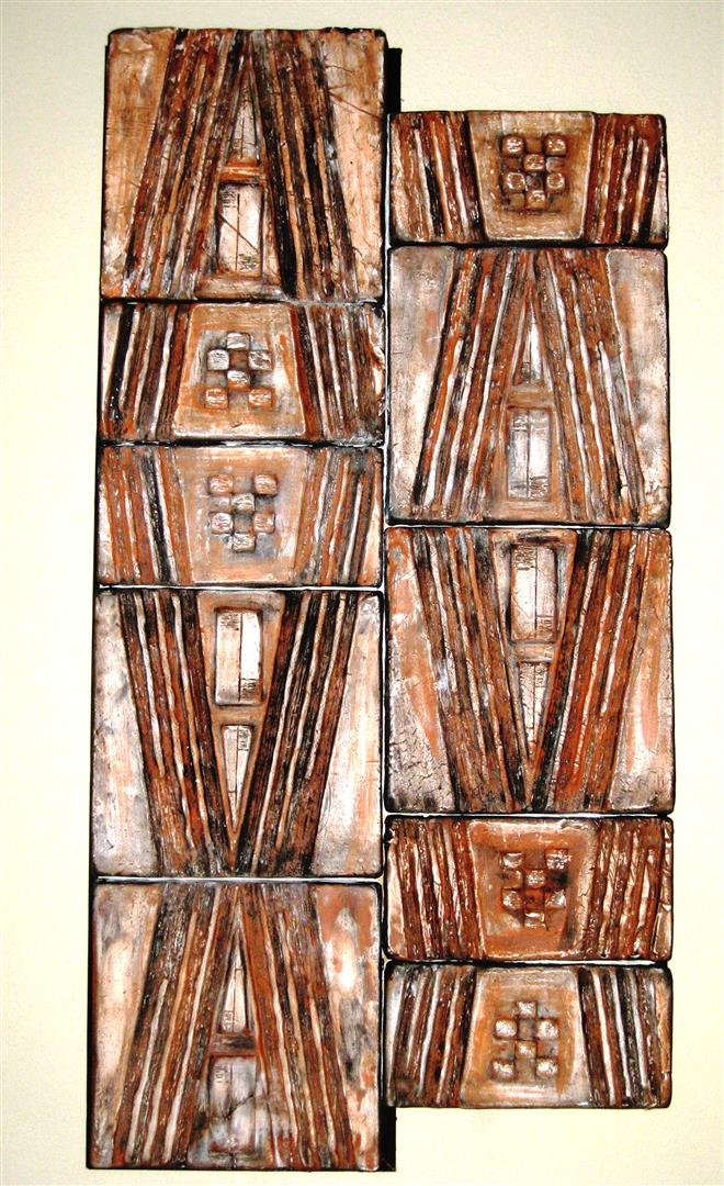 Besides being an artist, I’m also an architect, which influences the way I explore geometric shapes in my tiles. They carry the similar textures and colors present in my other pieces.