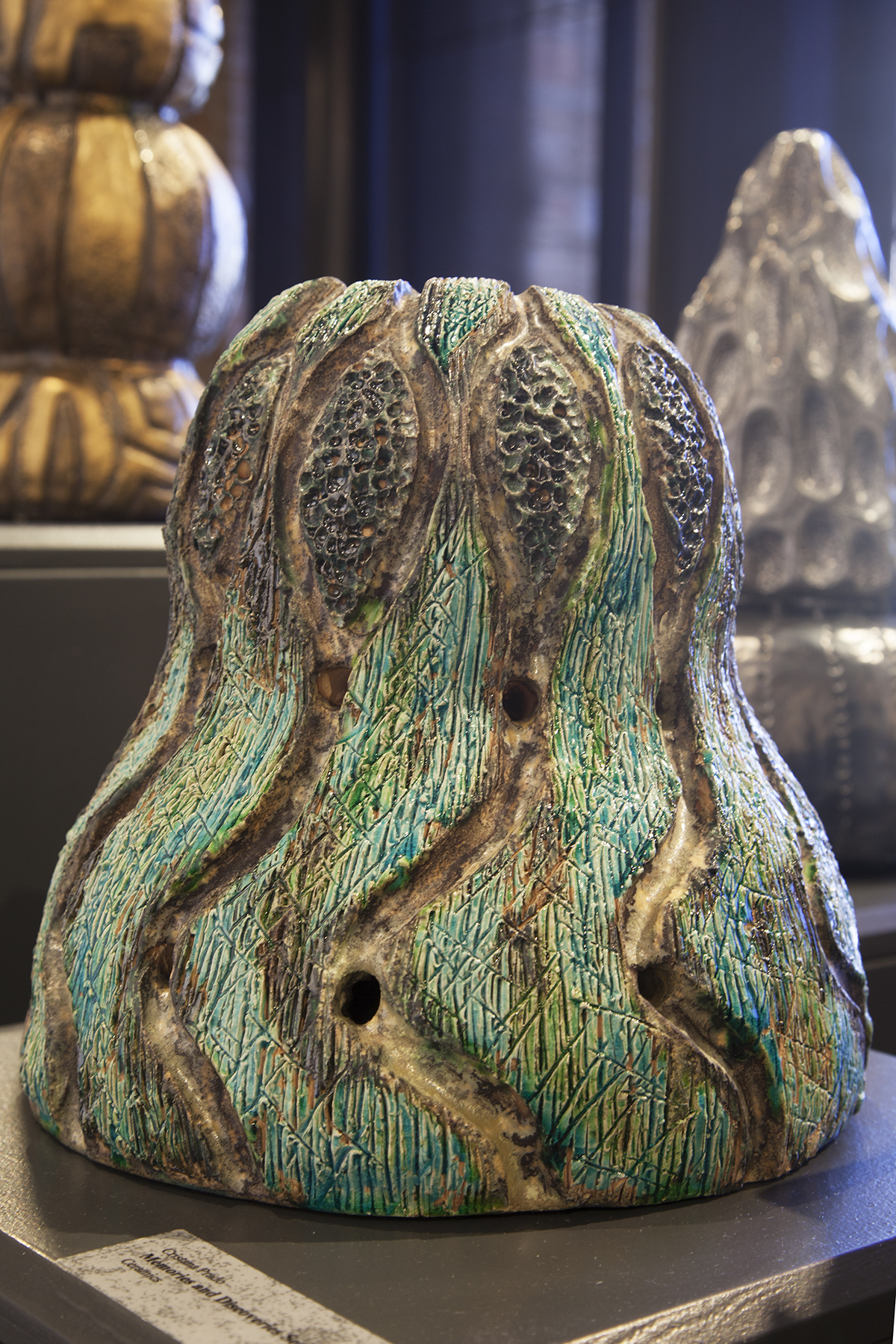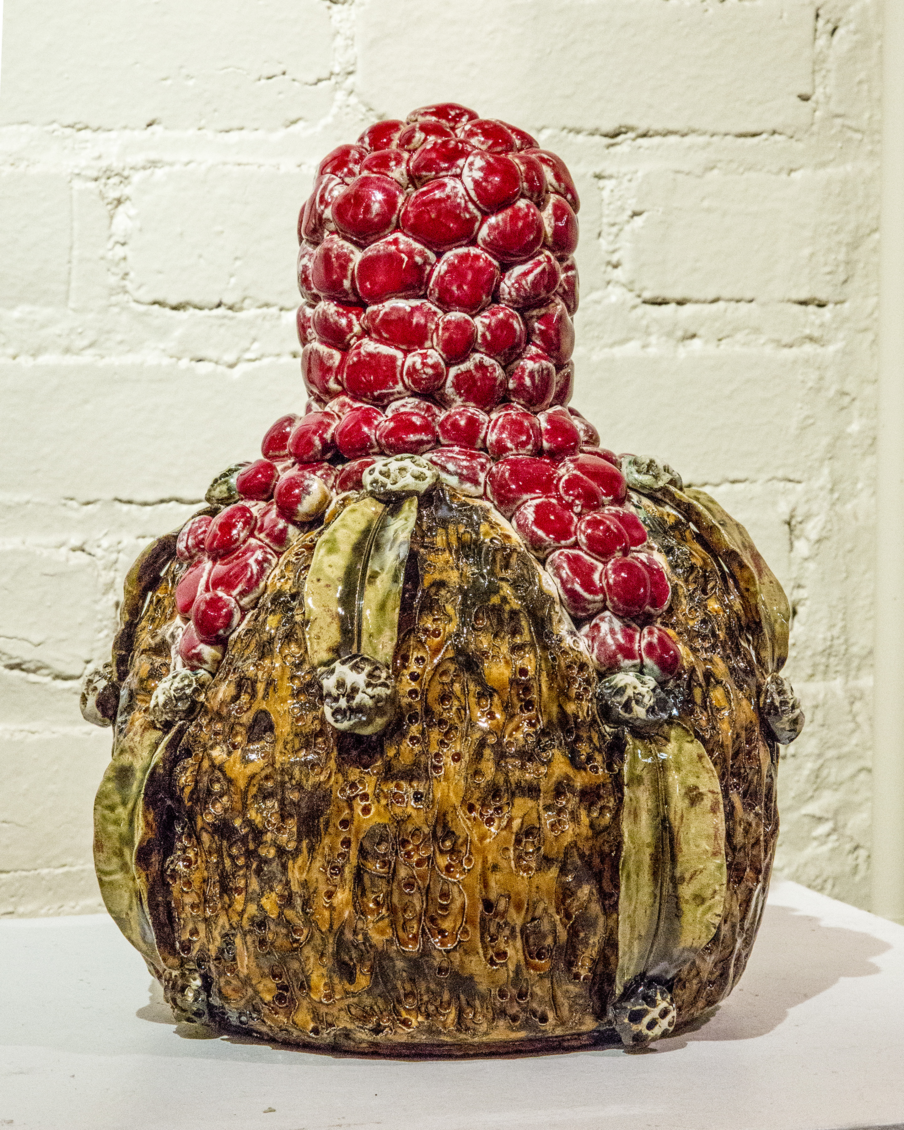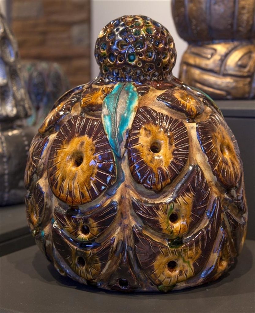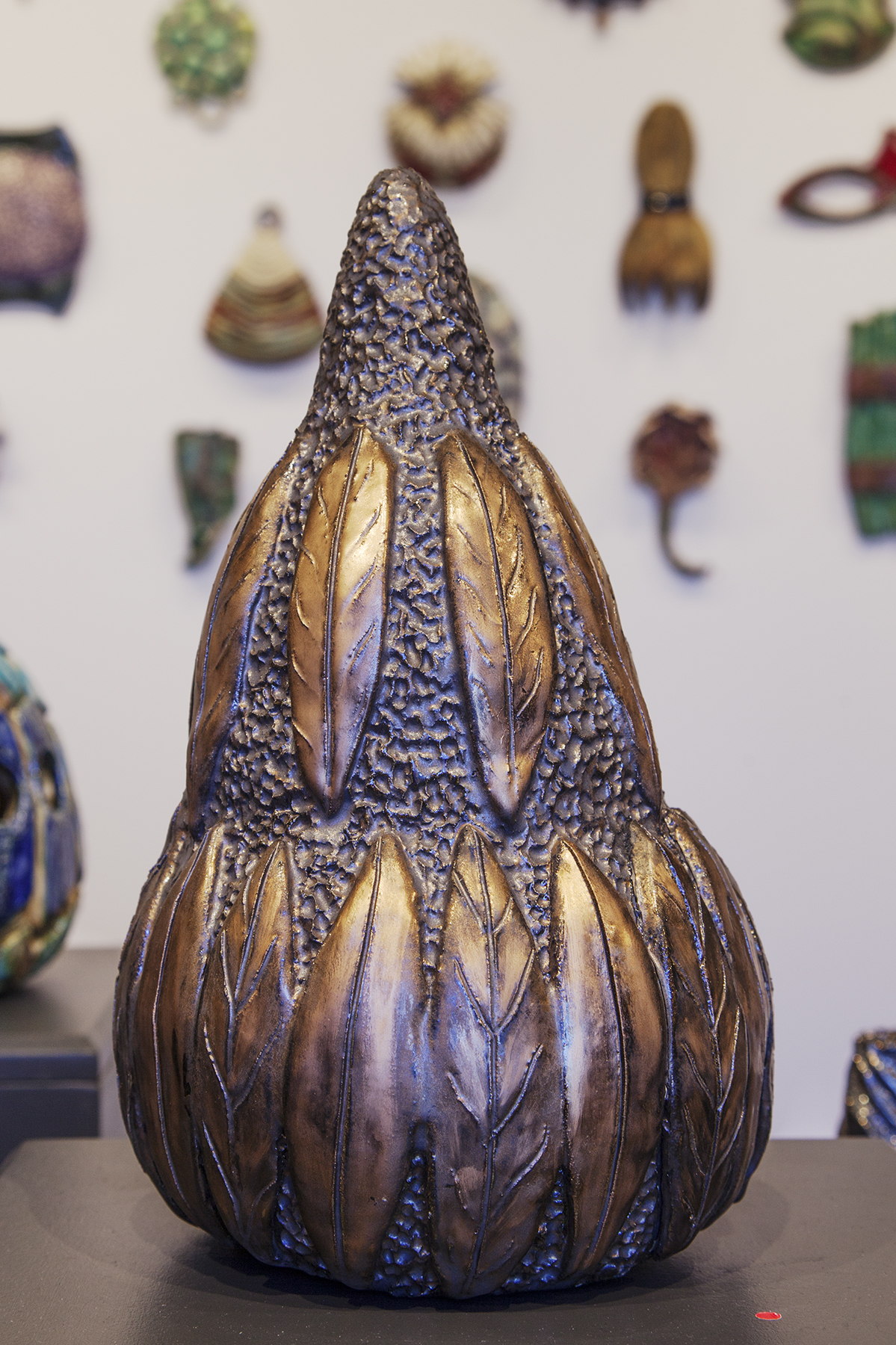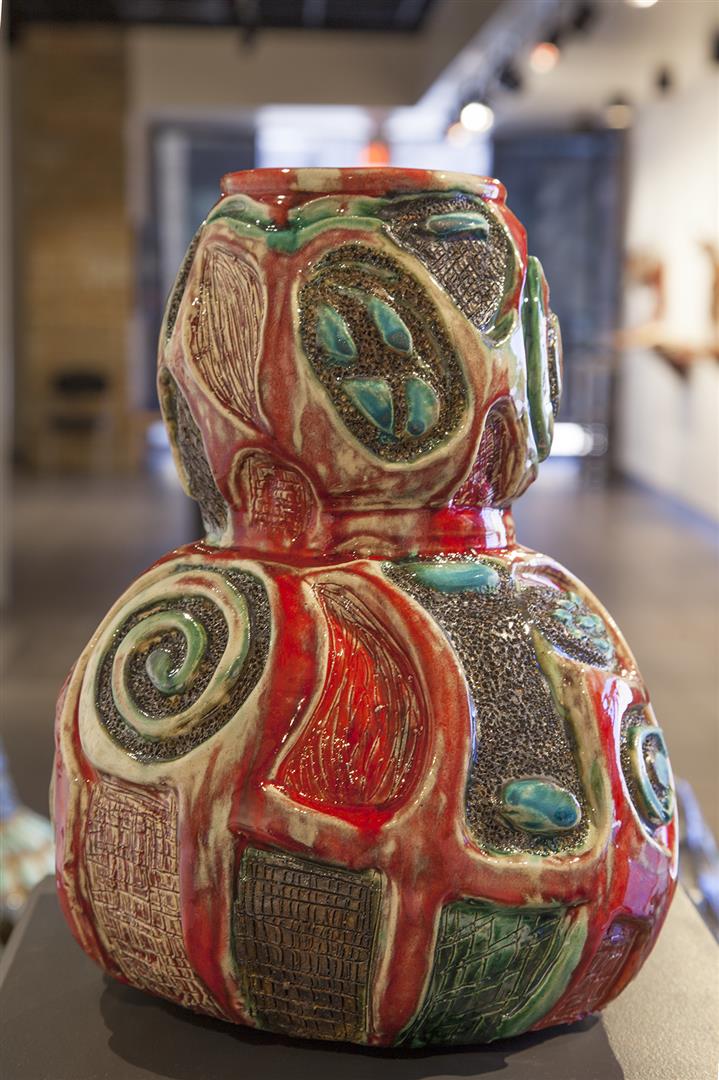 My vessels and gourds can provide information about my artistic inspirations. They are hand built with intricate textures and vivid contrasting colors that make them very unique.